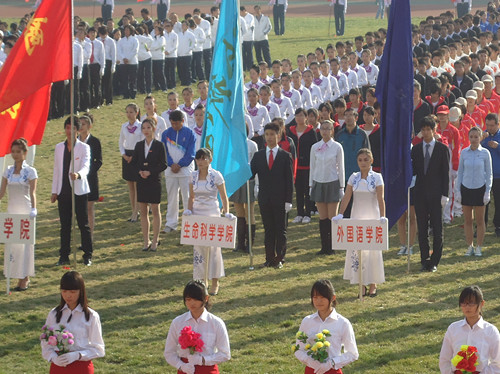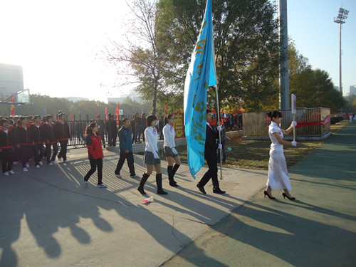 而后,赛场上依次升起国旗、校旗和会旗。望着庄严地旗帜,同学们的热烈掌声与满怀激情飞扬在赛场上空,久久不息。