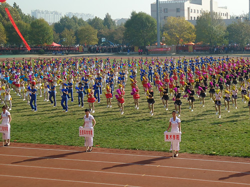 下面,带给大家的是精彩纷呈的文艺表演赛,首先出场的是跆拳道社团。伴随着激昂的音乐,他们排着整齐的队列出现在赛场上。他们的招式饱含力道而不失美感,成为赛场上一道亮丽的风景线。而后是教职工广播体操表演及中国传统武术表演。教职工们用认真的态度和辛勤的汗水将广播体操化为一曲运动的赞歌,激励着同学们生命不息,运动不止。舞龙、舞狮表演如火如荼,让同学们热血沸腾,切实感受到了中国传统武术与文化的魅力。随后由啦啦队带来健美操表演。来自各公司的姑娘们在赛场上旋转、跳跃,尽情的挥洒青春的汗水。轻快的音乐,灵动的身影,让每一颗年轻的心为之沸腾。伴随着大家的热情与欢呼,本次运动会开幕式圆满落下帷幕。