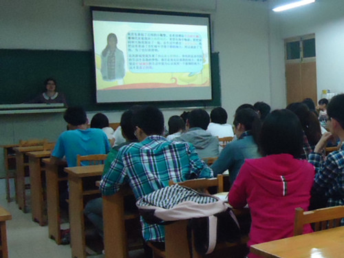 最后张老师对本届参赛的注意事项和参赛要求作了明确的说明:参赛选手制作PPT时,图片、视频等要占形式的绝大部分,内容要精、准,文字以讲解的形式向大家讲述,讲解时要自然大方,不要做语言文字的奴隶,要用自己的精神世界去驾驭它。最后,老师带领大家说出了本次活动的流程:“纸上谈兵”、“精彩再现”、“华丽谢幕”,并祝愿大家都能取得好的成绩。