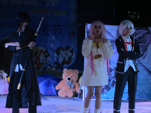 “摇晃的红酒杯 嘴唇像染着鲜血,那不寻常的美 难赦免的罪……”一首火辣的《王妃》拉开了此次动漫文化节的序幕。此后,初音v家恶之娘,火影忍者,妖尾之囧尾,龙葵及盗墓之十年之后动漫真人秀让现场观众大饱眼福。表演如火如荼的进行,动漫知识问答和现场小游戏互动,拉近了动漫真人和现场观众的距离。精美的雨伞,可爱的维尼熊等各种奖品更是激起了同学们抢答的热情,现场掌声呐喊声更是如雷惯耳 经久不息。