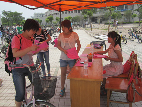 热情的集邮爱好者协会社团工作者们早早的齐聚三餐门口,贴好条幅,摆好展板,手拿单页,等待着为前来咨询的人做精美的解说,希望多拉些人来参加活动。餐厅门口虽然十分炎热,但是丝毫没有影响社团工作者的积极性,他们为前来的同学发放宣传单页,耐心细致地解说着活动的形式以及比赛流程,现场很多同学直接前来报名,并说感觉这个比赛简单而又十分有意义。