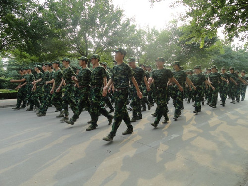 这是军训中最为艰苦,也最能磨练人意志的部分。教官是个在校老员工,军人的严肃背后还透露着一丝的腼腆害羞。虽说是第一次带兵,可他操练起来却是毫不留情。单是20分钟的军姿我们就吃不消了,接下来的各种训练更是让我们叫苦不迭。军训的日子定在9月初,夏末秋初的天气已不算太热,可这样的操练硬是让我们汗流浃背。教官经常挂在嘴边的话就是:“时间紧任务重,同学们一定不能懈怠啊!”于是乎,在教官严格的监督下,我们排无一人偷懒,气温再高日光再烈,我们把军姿站成一排排青松,肌肉再酸腰腿再痛,我们依旧咬着牙紧锣密鼓的操练。