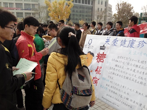 11月14日——联合国糖尿病日,在三餐门口,由校社联主办,生命家园承办的“关爱生命,珍爱生命”宣传活动顺利开展。此次宣传活动的目的在于宣传、普及糖尿病知识,做好防治工作。