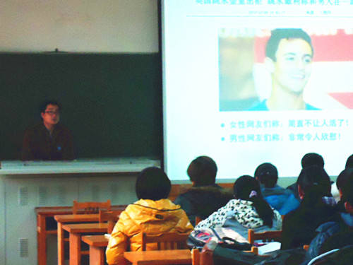 接下来,邓洪宽博士以“基因的你我他”为主题,通过几个问题引出了“什么是基因”这一主题,并做了简单的讲解。如何进行性别控制?为什么有求偶性?同性恋是否有基因参与?性取向是先天性的还是后天性的?一个个简单而神秘的问题调动了课堂气氛,同学们跟着老师的思路,解答心中的疑惑。最后,老师给同学们留下了机具吸引力的问题,引导大家根据所学知识进行联想思考,并为同学们进行现场答疑。
