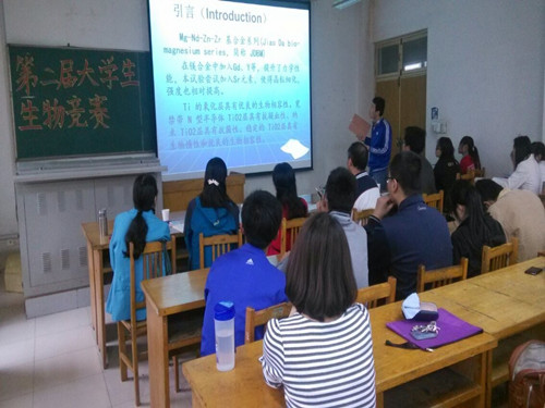 答辩未始,赵老师首先给同学们讲解了答辩过程中应注意的问题,她强调讲解要仔细到位,充分发挥团队合作、齐心协力的精神,并预祝同学们取得优异的成绩。至此,答辩会正式开始。在此次答辩中,参加竞选的一共有十四个小组,其中他们竞选的课题有“红豆杉多糖的分离与抗氧化活性研究”“牛奶中抗生素残留快速检测方法研究”等。竞赛分为汇报展示和答辩两个环节。由选手将自己参赛课题的研究目的、方法、过程及结果等方面做为时8到10分钟的简要介绍。然后,由评委老师对此项目进行提问,并提出合理化建议。随着时间的推移,答辩会也在如火如荼的进行。