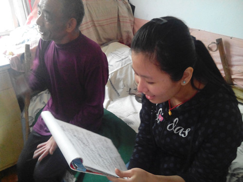 上午8时一行人准时从校西门骑自行车出发,半个小时左右我们带着自己的心意到达了房镇养老院,老人们对我们的到来表现出了极大的热情,我们的到来也使原本寂静的养老院充满了笑声。同学们为老人分发水果等慰问品,陪老人聊天、唱歌、下棋,帮老人打扫卫生等等。给我们印象最深的是一位酷爱音乐的七十多岁的爷爷,他和我们讲述自己的经历,并当场考我们,他演奏了几首曲子让我们猜歌,慢慢的,和着优美的旋律,我们也不由自主地唱起来——《打靶归来》、《军港之夜》、《最炫民族风》......阵阵欢声笑语使整个养老院充满了无限活力。聊得不知不觉活动就忘了时间,不得不离开了,同学们提出和老人合影留念,看着老人们挥手目送我们离开,嘴里不停地说着“下次再来呀......”,顿时大家心里暖暖的,却又酸酸的,自己做的很有限,却可以给老人们带去意想不到的精神上的快乐。