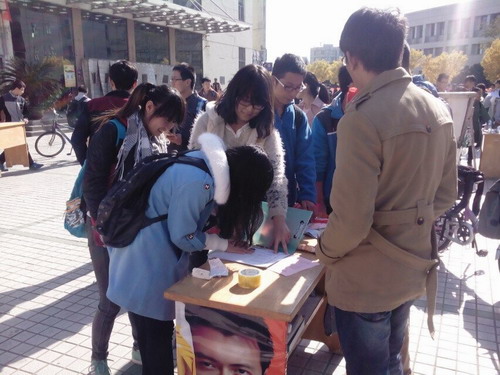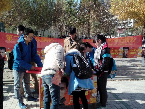 11月12日起至11月14日,由校社联主办生命家园承办的第二届“东鹏杯”生物知识争霸赛的宣传工作陆续在第二、三餐厅门口火热开展。