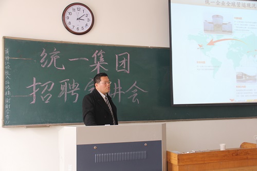 3月19日下午,统一集团代表许智杰博士在公司13号楼201教室召开了招聘宣讲会,公司2011级有就业意向的同学参加了此次会议。