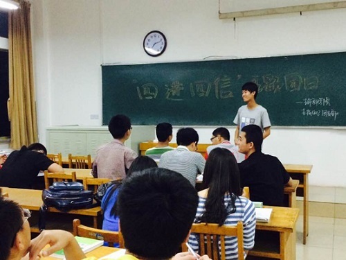活动主要以“以四进为手段,四心为目标——老员工有话说”的讨论会为主要形式。会上,团支书和班长先后介绍和强调了有关重要讲话精神的具体内容和社会意义,过程中班级中的每位同学都有机会就“四进四信”的了解和认识提出自己的观点和想法,并根据具体事例对自己的观点进行论证,由其他同学提出质疑和建议。虽然讨论会的气氛紧张,但在交流的过程中同学们的思想发生碰撞,彼此心灵上的沟通更加紧靠和顺畅,潜移默化的加深了彼此的情感。
