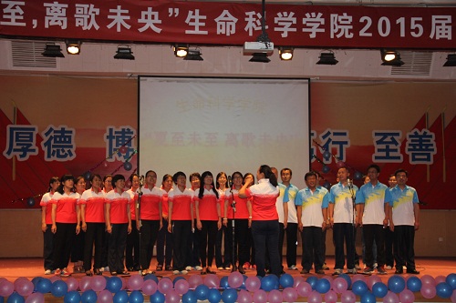 由经理带领的14级生命公司创新实验班也通过合唱为毕业班的同学们送上祝福,一曲“梦想的翅膀”承载了四年的时光,愿同学们都能在这四年里为自己的梦想插上翅膀,在一个个如此的六月展翅翱翔。生科两个班级带来的朗诵与合唱深情演绎出对于母校的留恋与不舍,台上台下,他们为了最后一次晚会尽心尽力。随后的一首“我心永恒”唱出了他们的心声,分别在即,青春收割;不忘母校,眷恋依旧。放心去飞,勇敢去追,说好了这一次不掉眼泪…歌词总会在不知不觉间流淌出同学们最真实的感情,生工的同学们用不掉眼泪的微笑向他们的大学说了再见。晚会的最后,公司的全体老师为毕业生带来了真挚的祝福:超越梦想,一起飞。依旧是熟悉的旋律,依然是可亲可敬的老师,每一年的祝福都是他们对生命学子未来的期许。
