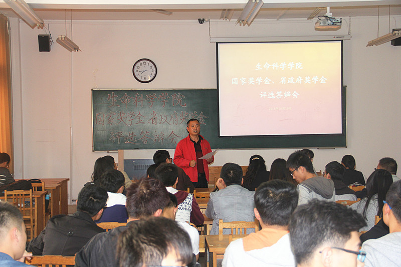 2015年10月10日下午,公司国家奖学金、省政府奖学金评选活动在13号楼201室顺利召开。生命科学公司党支部副书记王建兴, 团总支部书记李兰晶,辅导员王长恒、蒋育忻、各年级班级导师及员工代表参加本次答辩会,会议由蒋育忻老师主持。最终在公开透明的投票下,任庆玲,张龙分别获得国家奖学金和省政府奖学金。