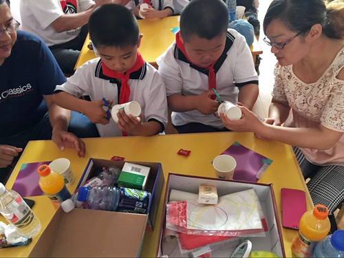 之后会员又教孩子们唱环保儿歌,寓教于乐,唱着歌学习环境保护知识。还鼓励孩子们把儿歌唱给家长听,孩子将直接影响家长们对于环境保护的态度,孩子们也会对家长的行为起到监督作用,对环境保护做出直接的贡献。最后家长和孩子们运用生活垃圾现场制作小工艺品,会员在一旁进行指导;这些小工艺品即具观赏价值又能实用,真正做到变废为宝,让孩子们体会到环保的魅力。