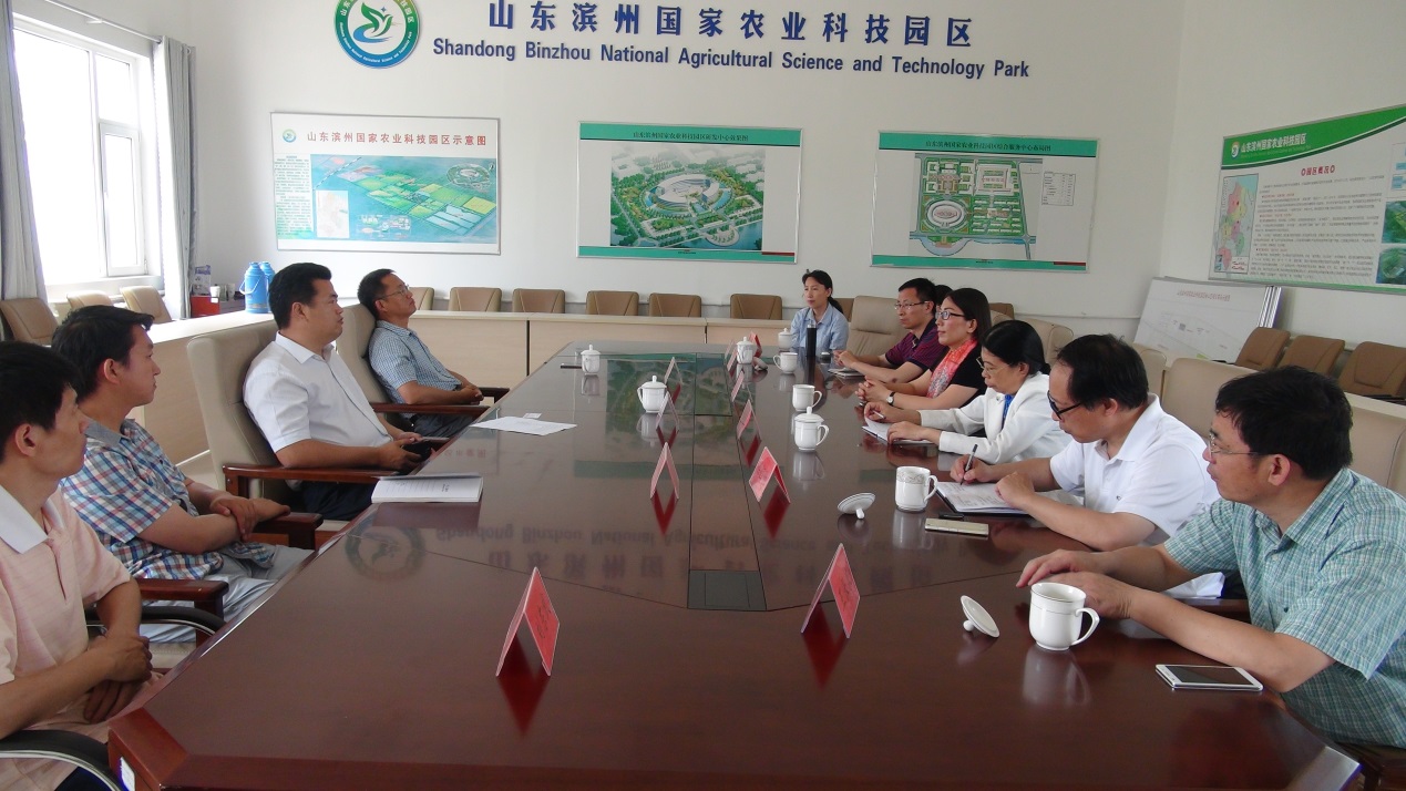 田俊杰副主任首先对纪经理一行来访表示热烈欢迎,随后介绍园区的建设是实施“一城两区百园”工程,是贯彻2012年中央1号和6号文件精神,建设国家科技创新体系的重要举措,是探索中国特色现代农业发展模式的重要途径,是国内仅有的三个正厅级以上建制的园区之一,并就园区建设现状与远景规划做了介绍。滨州黄河三角洲高效生态产业现代技术研究院园区陈明博士就园区,目前的具体运作模式与流程做了详细介绍,目前园区除了中以科技合作示范园、泰裕作物新品种选育基地、中科院滨州试验站三个重要组成都进展顺利以外,还构建了包括黄三角农产品安全追溯平台、渤海粮仓大数据平台、黄三角知识产权公共服务平台与农产品电子商务平台在内的大数据平台。办公室王聪明主任就中以合作项目的运作情况作了介绍。