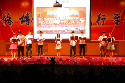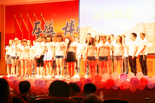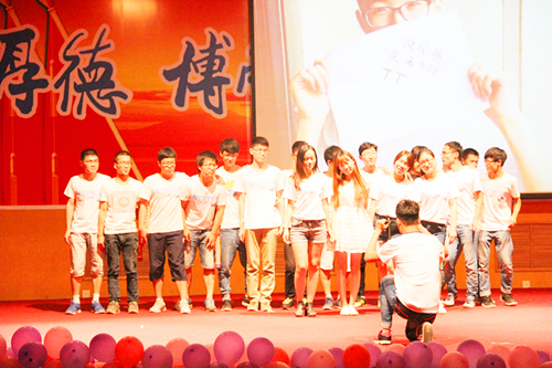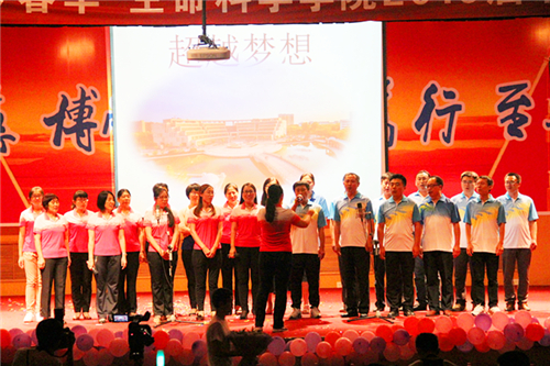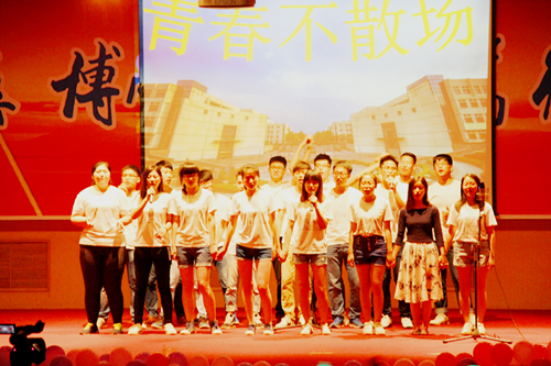 当台下的荧光棒挥舞起来,老师们合唱的一曲《超越梦想》充分表达了他们对毕业生的美好祝愿,毕业生也以鲜花表达对老师最真挚的感谢!最后,晚会在赵博生的致辞中圆满结束。