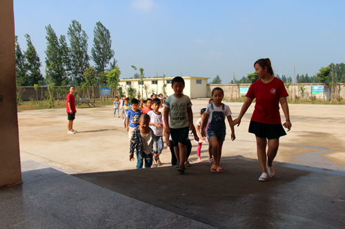 员工坐满了教室,上课就开始了,每个队员都先做了自我介绍,然后根据每个年级学习的内容开始上课。干净的教室走廊上不时传出来一二年级同学们的读书声、唱歌声。走进五六年级的教室,同学们认真的看着讲台上的老师,听着那陌生的知识,眼中闪烁着他们对知识的渴望,看到这种眼神,每一个老师都恨不得把自己知道的东西全部交给孩子们。孩子们也很积极,每次老师找同学上讲台上做题的时候,同学们也都积极地举手,生怕自己被落下。站在高中的教室外,看到老师在一对一的辅导,时不时也因为孩子们提出的难题而费一番心思,每个老师看到同学们学习的这一幕也都想起了自己高中时的紧张与忙碌,对这些孩子们也多了一些同情和期望。