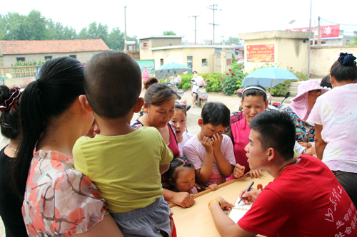 家长们对支教活动的热情超出了队员们的想象,前来报名的家长挤满了村委会的院子,不到半天就有超过150人报名。考虑到队员个人能力有限,下午对报名人数进行限制,最终招收了200名员工。