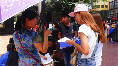 从近三天的调研情况来看,绝大部分人对于太阳村这一民间公益组织并不了解甚至是完全没听说,相应地,对于服刑人员无人监管的未成年子女这一特殊群体也知之甚少。“太阳村?这是个什么东西?没听说过的呀。我不知道的,你不要来问我。”在进行调研时,这样的话语听到的总是最多的,绝大部分参与填写调查问卷的人在之前都是完全不知道太阳村这样一个组织的,他们对于太阳村中的孩子们的身份存有一定的芥蒂,对于队员们的身份和目的也抱有怀疑。调研的队员针对这样的现实,在邀请市民朋友进行问卷调查之前都会亮明自己的身份及目的,在受调查人员填写问卷过程中会简要介绍太阳村的一些基本状况。即使是这样,仍旧有一部分市民不愿意接受。