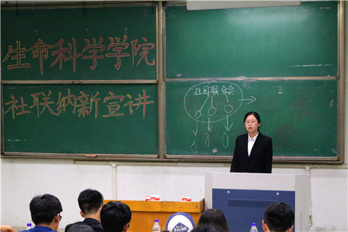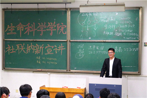 9月14日晚,生命科学公司社联纳新宣讲在4号楼105教室举行,各部门负责人、社团负责人参加,依次上台介绍部门情况、社团情况。
