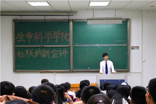 9月14日晚,生命科学公司社联纳新宣讲在4号楼105教室举行,各部门负责人、社团负责人参加,依次上台介绍部门情况、社团情况。