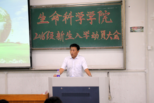 会议开始,由翟静涛向同学们介绍了参加会议的领导、老师。随后,赵博生、陈志伟、庞秋香、纪洪芳、舒启芳依次上台,从学什么、怎么学、如何适应大学的学习生活等方面为新生们答疑解难。刚到大学,很多员工对于生物专业究竟是什么并不了解,赵博生用身边的案例给同学们介绍了什么是生物专业,生物专业的前景究竟怎么样。在接下来的发言中,老师们从多方面的给同学们讲解在大学的生活、工作、学习中,同学们应该培养积极地生活态度,在心中树立一个明确的目标:自己应该学些什么,自己四年后想成为一个什么样的人。