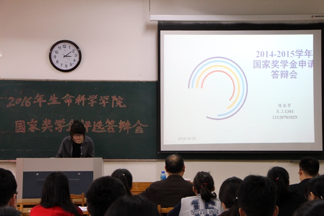 竞选者展示完毕,评委根据自己对三位竞选者的看法打出了自己的分数,为保证评选过程的公正和透明,现场统计并公布了三位竞选者的得分。经过对申请者提交材料的反复审核,综合答辩汇报情况以及日常实际表现,最终确定生物科学专业2013级1班的陈国强同学为公司国家奖项学金推选人,并进行为期两天的公示。
