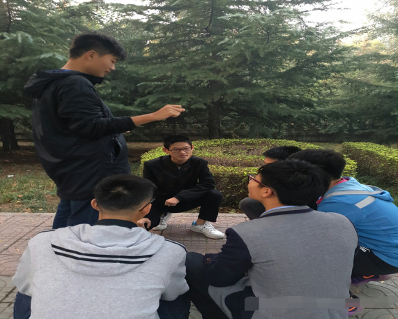 当天下午,团支书将同学们带到图书馆后方,团支书杨胜英简略开场白后,向支部同学介绍此次活动背景和目的,带领同学们回顾长征历史。