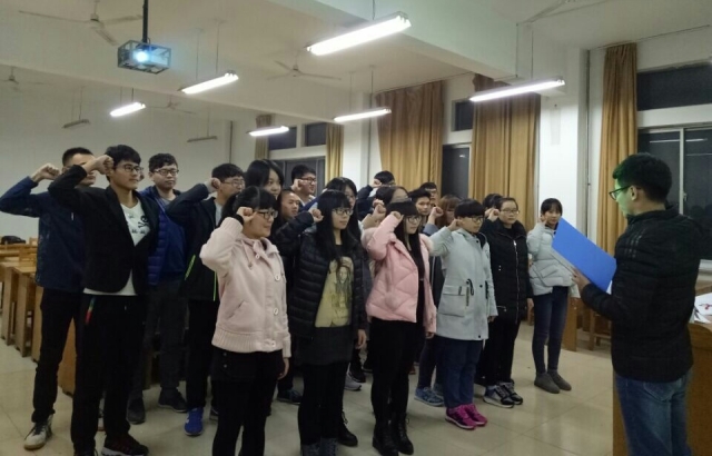 随后,在班长带领下,进行全体宣誓。“我坚信,在党的关怀下,在和煦的阳光下,我们将会茁壮成长,把祖国的明天建设得更加富强”,誓词高亢,表现同学们努力学习、奋发向上、共创未来的决心。