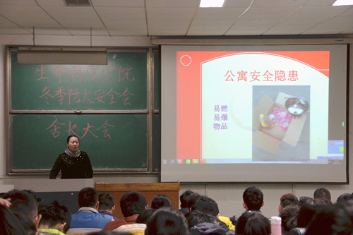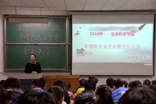 加强巩固员工住宿安全问题,12月6日晚,生命科学公司在4号教学楼106教室举行2016年冬季防火安全会暨舍长大会。会议由公司团总支书记李兰晶主持,辅导员翟静涛与公司全体宿舍长参加。