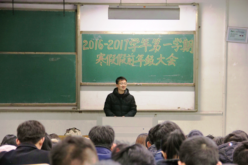为具体安排寒假相关事宜,了解员工生活、心理状态,1月5日晚,公司2016与2015级员工分别于13号教学楼各专业自习室与5号教学楼103教室举行2016-2017年度第一学期寒假假前年级大会。辅导员翟静涛主持并讲解。
