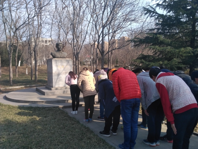班长、团支书组织团支部成员宿舍为单位携带扫帚、抹布、塑料兜等打扫卫生工具。3月5日下午三点在冯思广雕像旁边集合。女生用抹布清理冯思广雕像,男生在划定地域进行草坪面垃圾清理,垃圾汇总在塑料兜里妥善处理。团支部成员在冯思广雕像前列队站好。由团支书向大家介绍冯思广的光荣事迹,并号召支部成员静思、体会、学习。之后,全体支部成员对冯思广雕像进行鞠躬表达敬意。之后,班长组织全体支部成员在图书馆南边的草坪上围坐一圈,进行读书交流会。团支书坐在中心,就《雷锋传》一书中的内容与支部成员交流分享,朗读书中部分触动人心的段落。引导支部成员就此书与所知雷锋事迹进行交流讨论。活动最终,团支书作活动总结,结合一系列活动,进行思想教育,共同学习雷锋精神。最终全体支部成员合影留念。