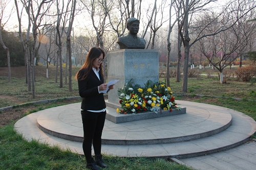 清明节到临之际,为了缅怀先烈,弘扬爱国主义精神,4月1日早上,生命科学公司2016级各班员工代表于图书馆南侧冯思广烈士纪念雕像前集合,举行“追忆先烈,纪念冯思广”活动。活动由学院员工会秘书处丁焕主持,主席王君正献花并致悼词。