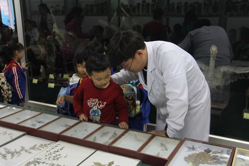 一个个充满无穷好奇心与求知欲的孩子们进入标本室后,小朋友们对各种标本表现出极大的热情和好奇心,眼前的新奇事物把他们心中的科学之火彻底点燃,一切都是那么生动有趣的东西。孩子们有序地在各个标本前参观,并向讲解员提出自己的问题,虽然这些问题可能很幼稚,却能让我们感到孩子对这个世界的好奇与探索心。讲解员耐心地回答孩子们的问题,同时反问孩子们一些有趣的问题,让孩子们自由的思考,开拓孩子们的思维。讲解员还普及了一些简单的生物学知识,以此来增长孩子们对生物学知识的理解,开拓视野。