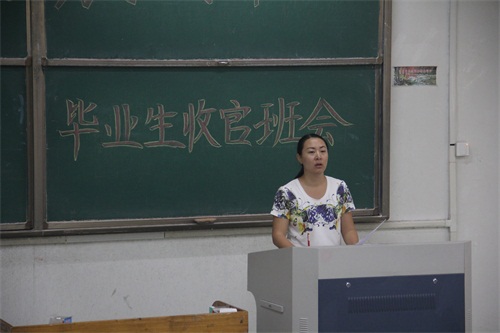 接下来,李兰晶宣布了毕业生离校前后续活动的相关工作安排,强调了2017届毕业生典礼及毕业生离校的相关流程,要求毕业生对此高度重视。之后,她安排了各毕业班班长及团支书整理毕业档案,要求各班班长、团支书告知本班员工档案相关内容,以确保档案信息的正确性与完整性。会议最后,李兰晶向在座各毕业生讲解了自我保护方面的相关内容,并表达了全体教职工对2017届毕业生的美好祝愿。