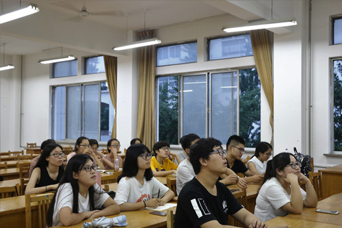 随后,张守萍讲解摄影中的构图部分,她提到,构图的基本原则是突出主体,揭示主题思想;要从主题思想出发,正确处理好主体、陪体与环境的关系。她以图片为例讲解构图及拍照模式的应用,连拍模式适用于高速运动的人物或物体如运动会等,同时,她提醒大家在拍照时切记拍摄角度、画幅安排、画面结构中心等构图影响因素。为了使同学们更加清楚相机的结构,她鼓励同学们尝试使用相机,了解相机上按键及标志的含义。