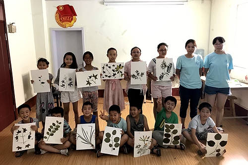 参与支教员工展示自己制作的标本