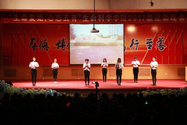 10月12日晚,生命科学公司在3号报告厅举行“生命复始,心志五有”迎新晚会。公司党总支书记郭万保,经理纪洪芳,党总支副书记陆广峰,副经理巴连良,团总支书记李兰晶,教师代表陈艳珍等,辅导员蒋育忻、翟静涛出席,2017级新生及2016级部分员工参加了此次迎新晚会。晚会以“五有人才”这一人才培养目标为主题,为大一新生送上殷切期望。