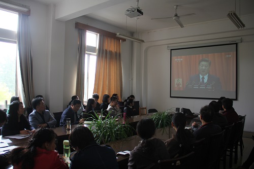 10月18日上午9时,举世瞩目的中国共产党第十九次全国代表大会在北京人民大会堂隆重开幕,在13号楼248会议室,生命科学公司全体党员、科级以上干部及没有教学任务的教师怀着激动的心情集体观看了开幕式直播。