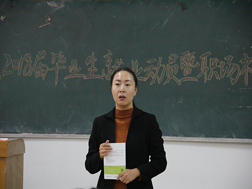 此次讲座旨在对有就业意向的毕业生进行就业动员及职场礼仪指导,帮助毕业生树立正确的择业观,使其顺利就业。会议期间,李兰晶从毕业生在就业过程中可能会遇到的问题入手,详细讲解了具体的解决办法,并为毕业生深刻分析了现如今的严峻就业形势以及在严峻的就业形势下,毕业生应该如何应对。她讲道:“面对就业,必须要调整好心态,既要有自信,也要有承受挫折的准备。”