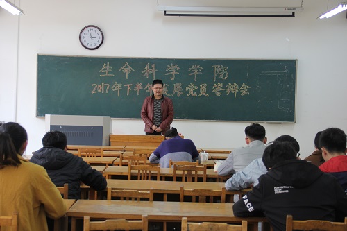 会议中,党支部对发展党员对象另设三个主观题,分别为入党动机,对党的十九大报告的学习心得,自己目前在学习、生活和工作中存在的问题。同学们认真思考,有序发言,充分阐述了对党的深刻认识,表达了自己对志愿加入中国共产党的坚定信念。同时,党员代表也针对大家的发言表达自己的看法,对答辩者进行了全方位的评价,表扬答辩同学的优点的同时,清晰明确地指出他们目前存在的不足之处,并给予改进意见,答辩同学认真听取意见,整场答辩会有条不紊地进行。