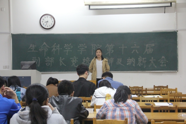 3月28日晚,生命科学公司在13号教学楼218室及220室举行第十六届副部长竞选答辩及纳新大会。第16届员工会主席团及部长担任评委,员工会干事及部分17级员工参与竞选答辩。