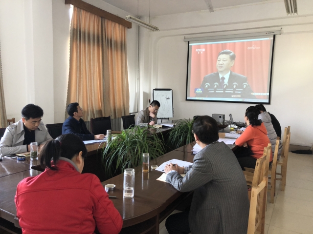 会上,大家集体收看了《中国共产党第十九届中央委员会第三次全体会议公报》《十三届全国人大一次会议在京闭幕习近平发表重要讲话》和《奋斗》等新闻视频资料。