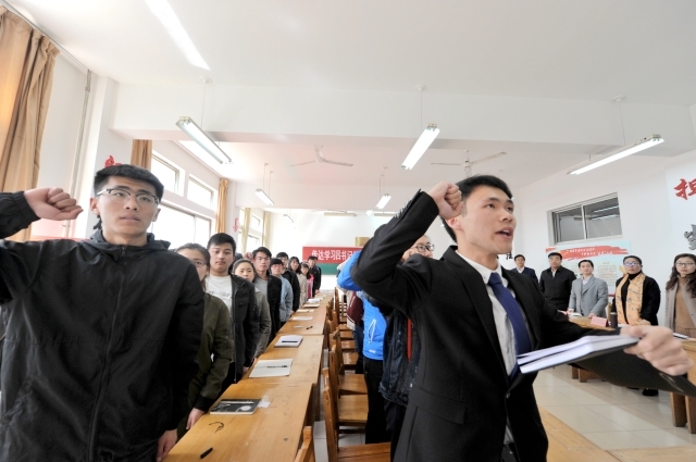 最后,“冯思广班”全体同学集体面对班徽,庄严宣誓。