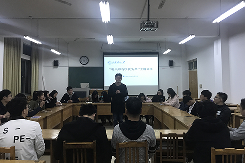 活动伊始,王新月分享了“为《理工人的南极故事》打call!”的微信文章,并向同学们介绍了公司2012届的优秀员工王志良的事迹。随后,团支部开展“明天母校以我为荣”主题演讲,团支部成员踊跃参与,团支部成员郑善民从“我们在优秀员工身上能学到什么”的角度,讲述了冯思广等优秀员工的事迹,提出了“为了明天能让母校以我为荣,我们今天应该怎么办”的思考,他号召同学们要尽早确定自己的目标,并为之不懈努力。