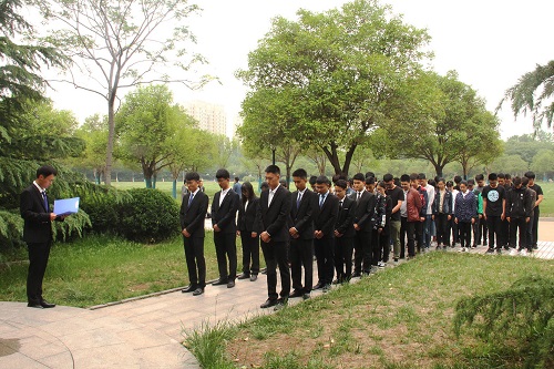 凛然英雄气,激荡天地间。赵鹏在冯思广雕像前行鞠躬礼后,宣布悼念冯思广烈士活动开始。首先,部分参与成员为冯思广烈士扫墓,全体人员默然肃立,向冯思广烈士进行默哀三分钟,寄托无限哀思。