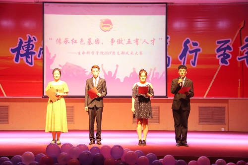 5月17日晚,生命科学公司在3号报告厅举行“传承红色基因,争做‘五有’人才”2017级团支部风采大赛,公司党总支书记郭万保,经理纪洪芳,党总支副书记陆广峰,团总支书记李兰晶,辅导员蒋育忻、翟静涛参加,孔玲、钱绍松、赵倩、桑锋、袁佐清五位公司班级导师担任评委。