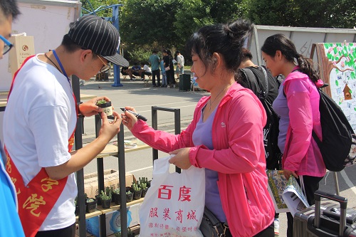 新生办理各项手续后,公司志愿者为新生以及他们随行的家长介绍公司概况,向他们展示公司18届考研人员风采。同时向新生介绍员工自制标本,以及公司自酿红酒。为迎接新同学,辅导员李兰晶挑选了300多份绿植,摆在迎新现场进行派送,新生只需给绿植命名即可拿走。18级新生纷纷给自己的小多肉命名,并在迎新现场和家人合影留念,纪念自己的大学第一天。