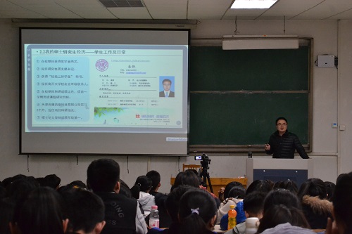 会议伊始,李兰晶向同学们简单介绍桑锋老师,并叮嘱同学们认真学习,从分享中学到经验,避免在未来道路上走弯路。随后,桑锋以老员工活为引,向同学们讲述自己的求员工涯,从大学毕业准备找工作,到决定考研,桑锋感触颇多。他说到:“你努力了不一定会成功,但你不努力一定不会成功。”回想自己的考研经历,桑锋也向同学们分享自己的几点建议与经验:一是明确的奋斗目标;二是积极向上的自信心;三是详细的复习计划;四是持之以恒的努力;五是良好的作息规律;六是目标一致的学习环境。此外,桑锋还向同学们讲述了硕博期间的求学经历以及在公司的工作经历,过程曲折,但丰富多彩。