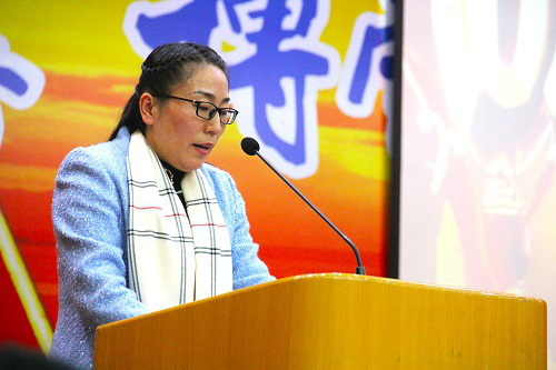 山东圣海保健品有限公司副总经理程桂香女士代表公司致辞,她简要介绍了山东圣海保健品有限公司的基本情况和设立奖学金的目的,表示公司一直秉承校企合作的理念,持续关注教育事业等社会公益活动,并将不断加大与公司的合作力度,最后鼓励获奖员工要脚踏实地,继续努力,勇做时代的弄潮儿,放飞青春梦想,谱写最美好的人生华章。