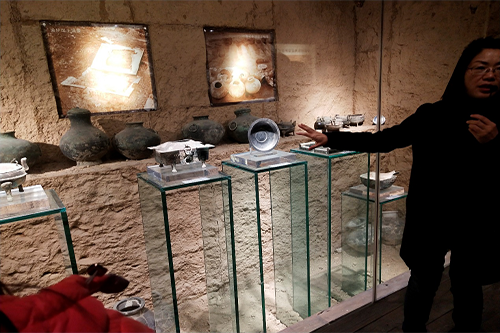 讲解员耐心的讲解,为我们再现了齐国春秋争霸、韩国称雄的历史。协会的成员们了解到了淄博本地的悠久历史和灿烂的古代文明。在讲解员金津津有味的介绍下,同学们也不时地驻足欣赏。