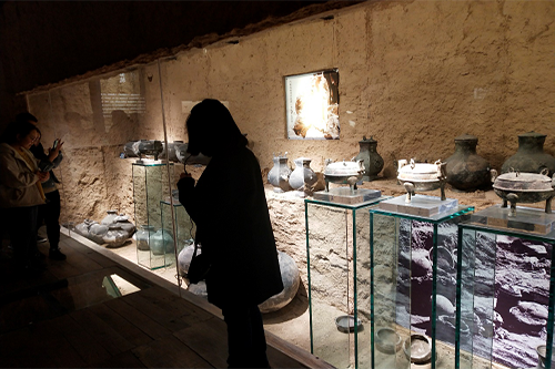 讲解员带我们参观完三号墓后,便让我们自行参观。对古代文物好奇的同学们游览了整个文物展览区,满足了同学们的精神需求。